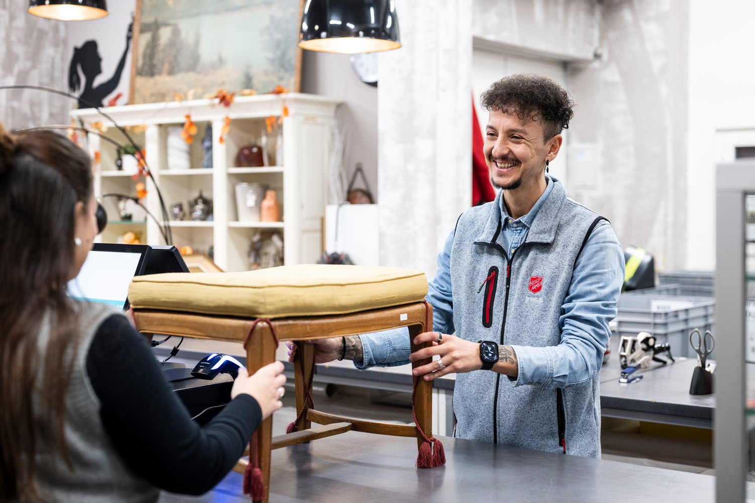 Brockis bringen Menschen mit ganz unterschiedlichen Hintergründen zusammen. Kundinnen und Kunden treffen beim Stöbern aufeinander, kommen ins Gespräch über besondere Fundstücke und tauschen Geschichten aus. Gleichzeitig arbeiten in vielen Brockis Teams, die aus Menschen mit verschiedenen Lebenswegen bestehen – von Freiwilligen über Mitarbeitende, die in der Arbeitswelt neu Fuss fassen, bis hin zu langjährigen Fachkräften. Diese Vielfalt prägt die bunte Atmosphäre in den Filialen. So werden Brockis zu lebendigen sozialen Räumen, in denen Begegnung, Austausch und Gemeinschaft ganz selbstverständlich entstehen.