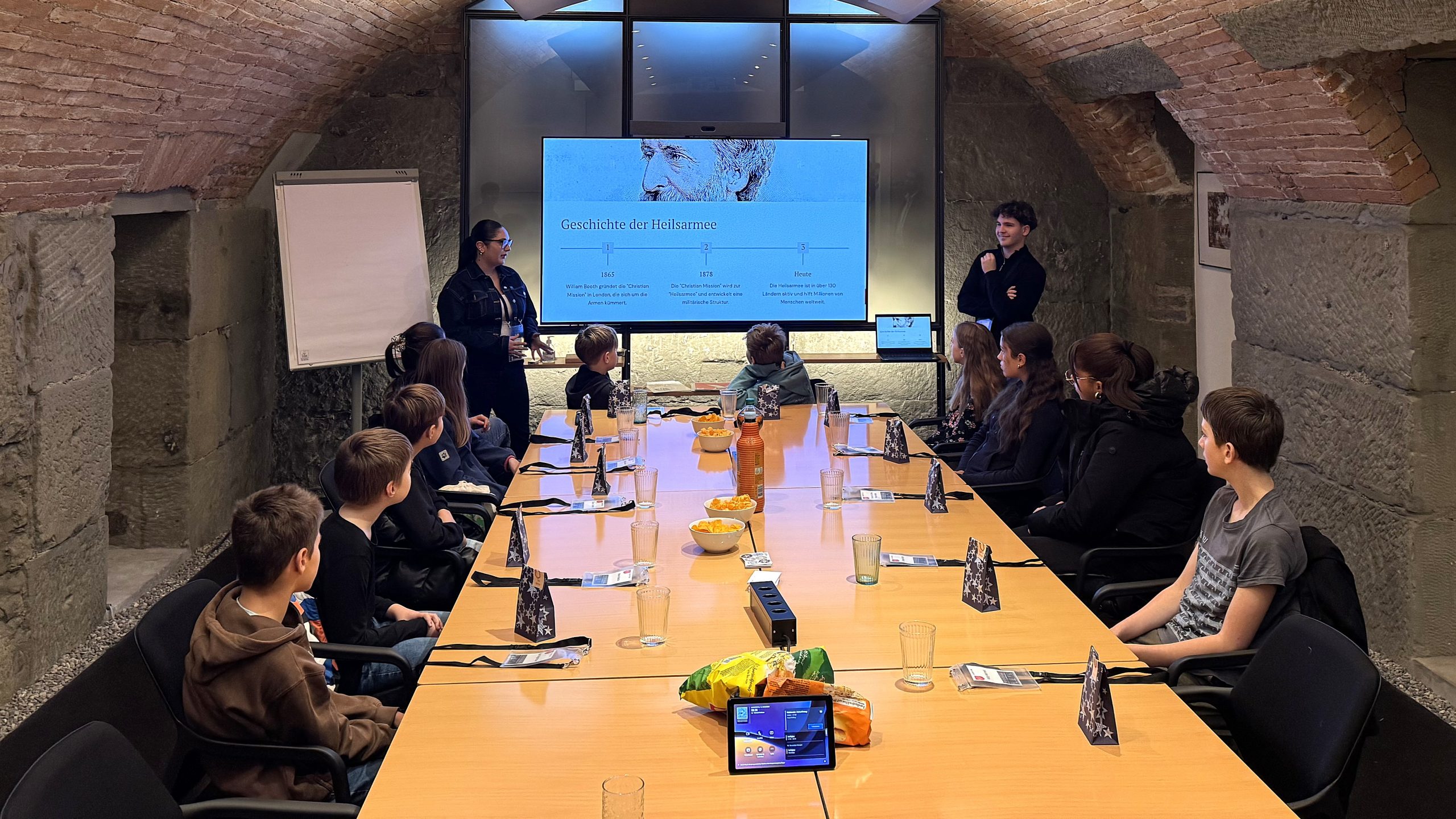 À 14h00, place au jeu : un quiz Kahoot a mis tout le monde de bonne humeur et a permis d’approfondir les connaissances sur l’Armée du Salut et ses activités. Une courte pause a suivi à 15h00, avant de reprendre à 15h15 avec un atelier sur les logiciels professionnels. David Plüss, responsable des applications, a montré comment les outils numériques facilitent le travail dans des domaines tels que les finances, les affaires ecclésiastiques ou le travail social. Les jeunes ont développé leurs propres idées d’applications et ont parcouru de manière ludique les différentes phases d’un projet logiciel, de la planification à la mise en service.
