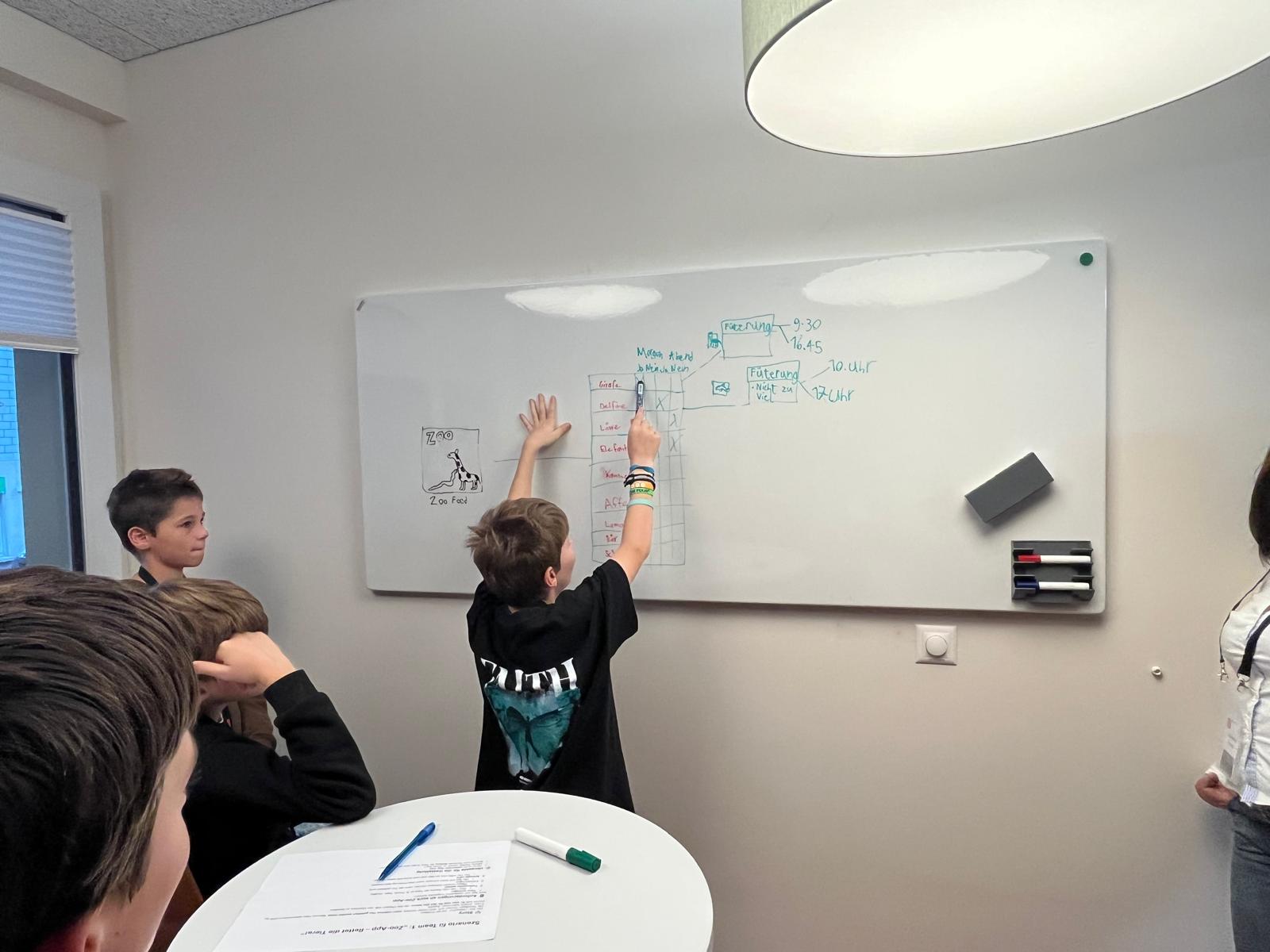 Après la pause déjeuner à 12h00, pendant laquelle tout le monde s’est régalé de pizza, la visite s’est poursuivie à 13h00 au service informatique. Une expérience particulière les y attendait : la programmation d’un robot ! Les deux apprentis ICT Nick & Tenzin ont expliqué les tâches de l’informatique au siège et montré comment résoudre les problèmes techniques. Les jeunes ont été enthousiasmés par la technologie et les possibilités qu’offre ce domaine.