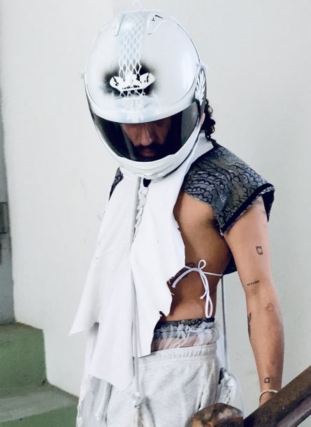 L’une de ses trouvailles à la brocki, un casque de moto, a influencé son travail artistique : c’était un objet qui la fascinait et qui a ensuite inspiré tout un projet.